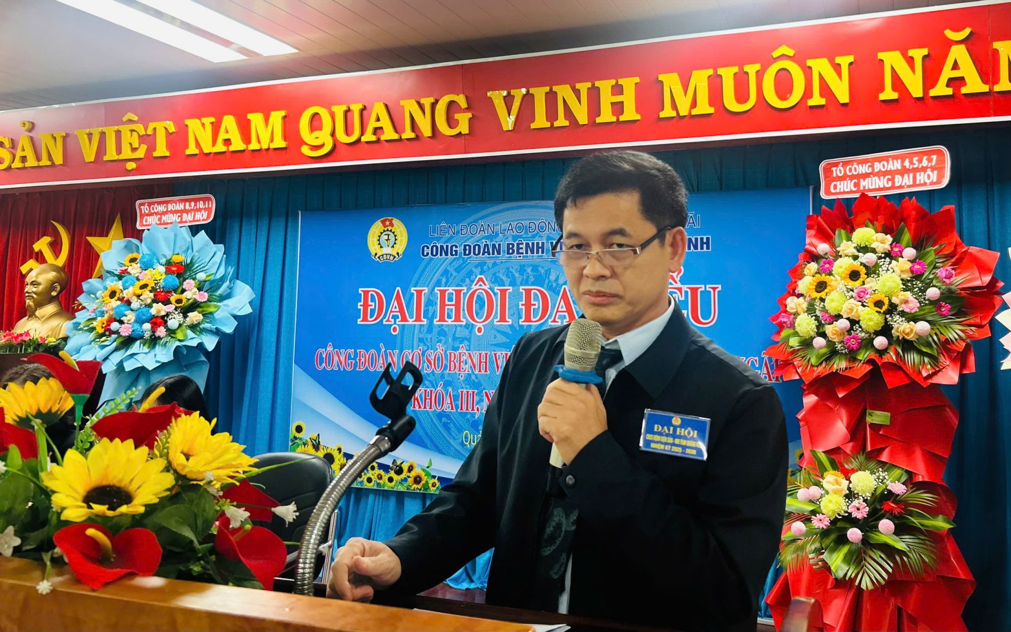 Phát biểu chỉ đạo tại Đại hội, Tiến sĩ, Bác sĩ Nguyễn Đình Tuyến, Giám đốc Bệnh viện đã ghi nhận và biểu dương những thành tích đã đạt được của tổ chức Công đoàn và toàn thể đoàn viên, người lao động trong nhiệm kỳ vừa qua. đề nghị, trong nhiệm kỳ tới, Công đoàn Bệnh viện cần tiếp tục phát huy tinh thần đoàn kết, đổi mới nội dung và phương thức hoạt động; chú trọng đại diện, chăm lo lợi ích thiết thực cho đoàn viên, người lao động; đẩy mạnh các phong trào thi đua gắn với chuyên môn; xây dựng đội ngũ cán bộ công đoàn có bản lĩnh, trí tuệ, tâm huyết; góp phần thực hiện thắng lợi các mục tiêu phát triển của ngành Y tế trong giai đoạn mới.