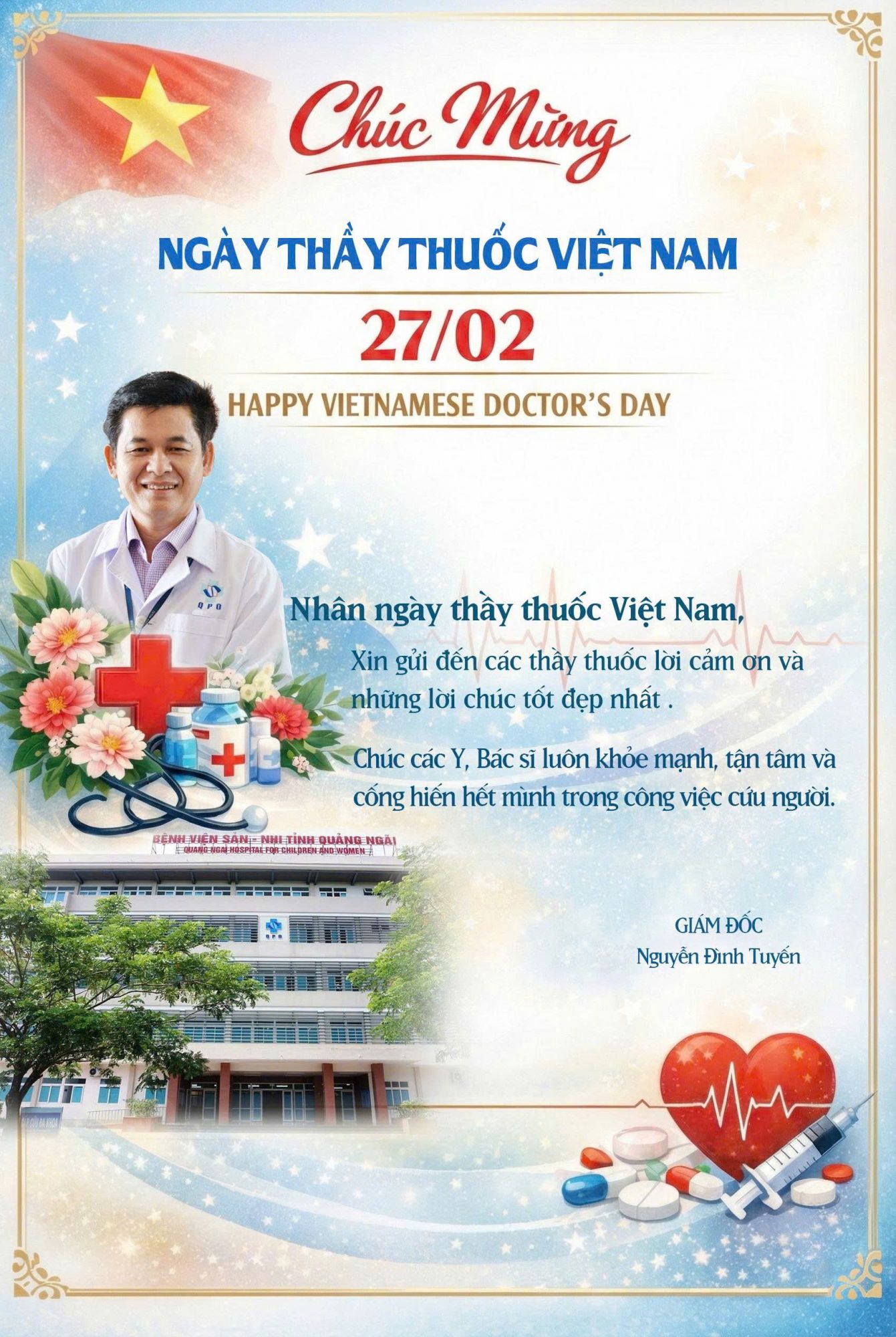 Hòa chung không khí tự hào kỷ niệm 71 năm Ngày Thầy thuốc Việt Nam (27/2/1955 – 27/2/2026), tập thể Ban Giám đốc và đội ngũ y bác sĩ Bệnh viện Sản – Nhi tỉnh Quảng Ngãi tiếp tục khẳng định tinh thần trách nhiệm, tận tụy ngày đêm vì sức khỏe nhân dân.